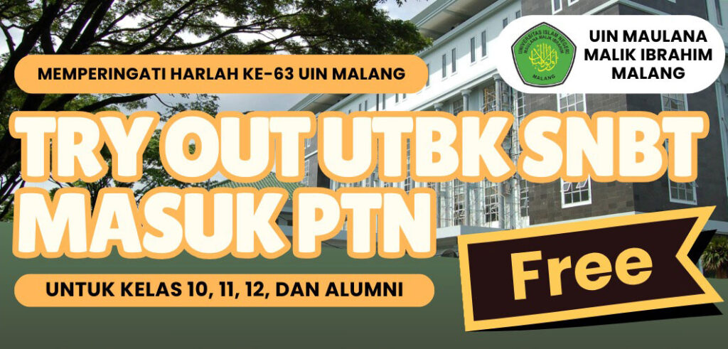 Sehubungan dengan pentingnya persiapan untuk melanjutkan studi ke Perguruan Tinggi Negeri (PTN) bagi siswa-siswi SMA/MA/SMK sederajat, maka kami dari UIN Maulana Malik Ibrahim Malang bekerjasama dengan EDU TALENTA, bermaksud untuk mengundang siswa-siswi bapak/ibu dalam acara Kompetisi Try Out UTBK SNBT yang akan diadakan secara GRATIS tanpa dipungut biaya apapun. Jadwal